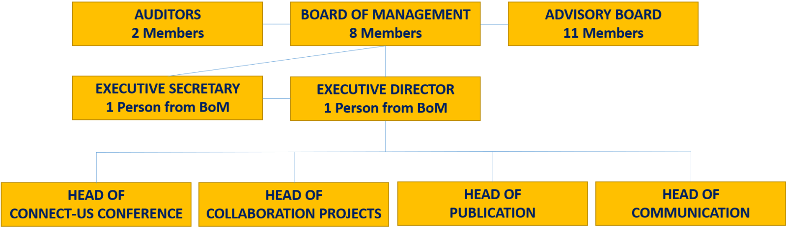 The Board of Management officially represents the Association in conducting all its current business.